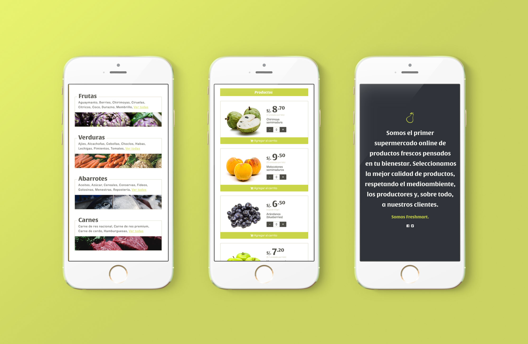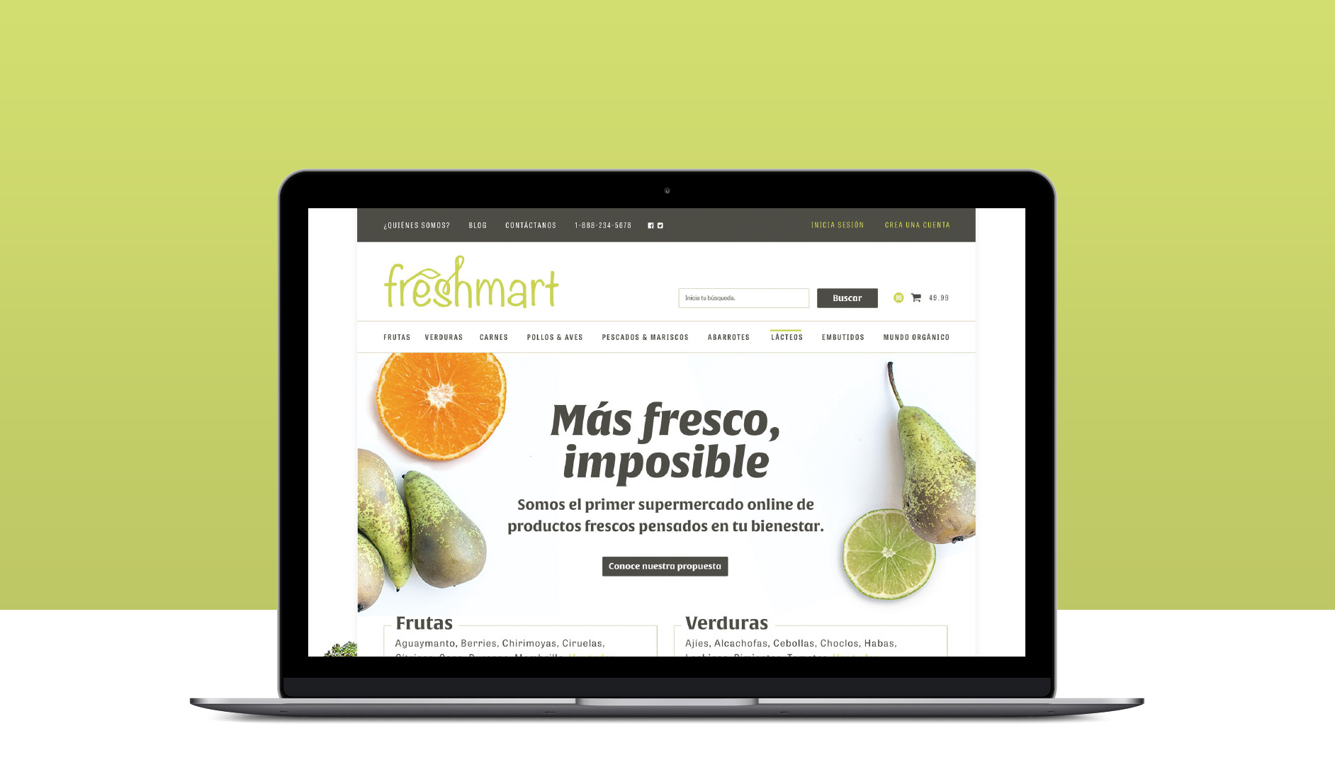 Freshmart, a new online delivery service for fresh foods and produce based in Lima, Perú, looked to us to design their new website and help them flesh out their visual identity. We drew upon the vibrant colours and typography of latin american open-air markets to showcase their service's freshness. This project included homepage design and photography art direction and editing. Development by DF Group in Perú.